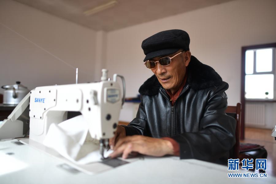 3月14日,在治多縣幸福敬老院手工藝室內(nèi),來自治多縣多彩鄉(xiāng)的76歲老人尼松在制作手工藝品。新華社記者 張宏祥 攝