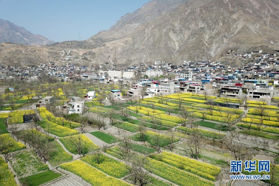 臨近春分時節(jié),甘肅省甘南藏族自治州舟曲縣境內的油菜花競相盛開,黃色的油菜花與田野間的綠色植物交相輝映,美不勝收。