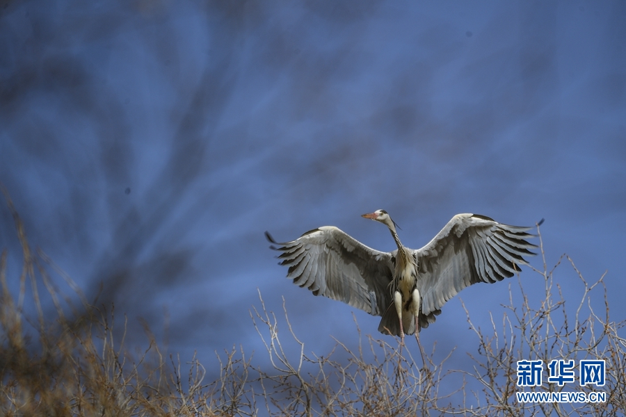 翩然起舞的蒼鷺。新華網(wǎng) 卡婭梅朵 攝