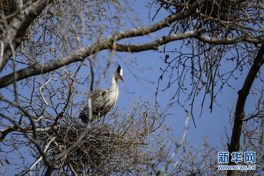 春暖花開,候鳥回歸。隨著天氣的轉(zhuǎn)暖,數(shù)十只蒼鷺在青海省海南藏族自治州貴德縣河?xùn)|鄉(xiāng)的一棵百年楊樹上安家筑巢。