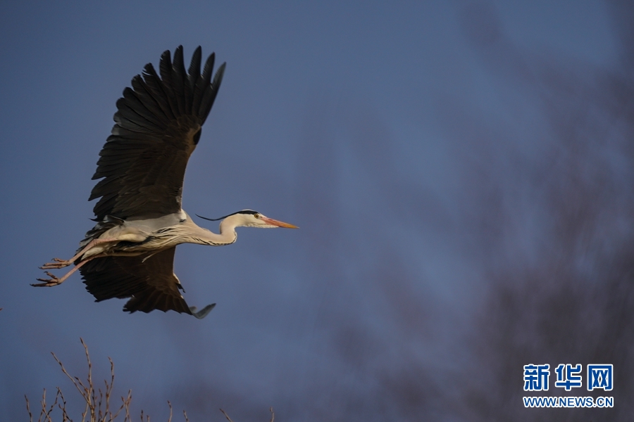 一只蒼鷺在空中飛翔。新華網(wǎng) 宋忠勇 攝