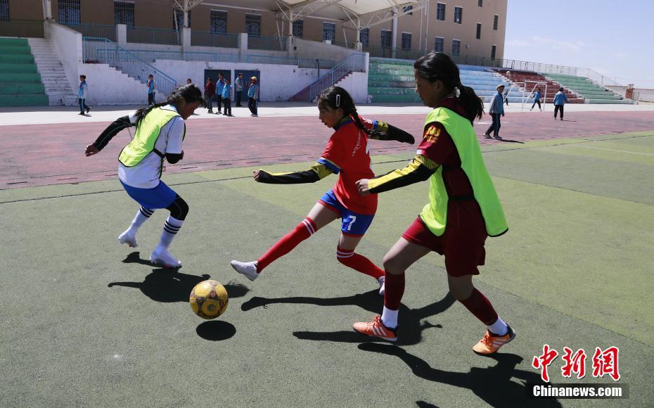 4月21日,青海省海南藏族自治州共和縣,青海湖民族寄宿制學(xué)校的足球場上,女子足球隊的隊員們正在進行訓(xùn)練。該校的女子足球隊共有小學(xué)組、初中組隊員53人,皆為來自牧區(qū)的藏族女孩。中新社記者 馬銘言 攝