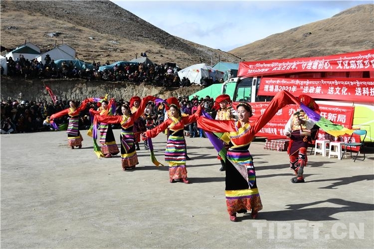 理塘縣文旅廣局工作人員還為群眾呈現(xiàn)了精彩紛呈、寓教于樂的文藝演出,歌曲、舞蹈一個(gè)接著一個(gè),姑娘們熱情萬分,默契十足地邁著優(yōu)雅的舞步;男子們帥氣的舞姿英武颯爽,優(yōu)美的歌聲婉轉(zhuǎn)動(dòng)聽,讓歡聲笑語久久響徹山間。