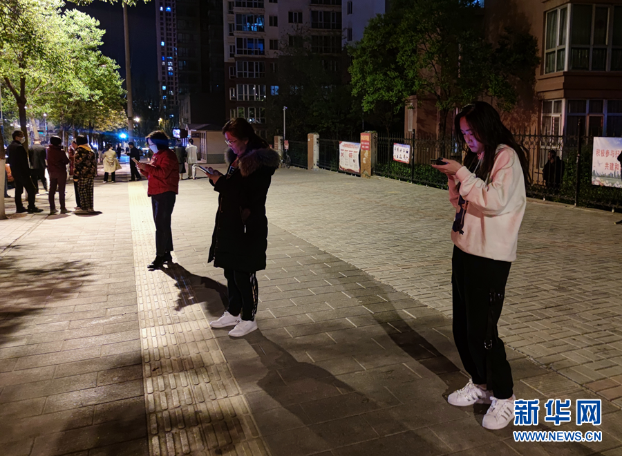 5月22日凌晨,西寧市民在空曠地帶避險(手機照片)。新華社記者 張龍 攝