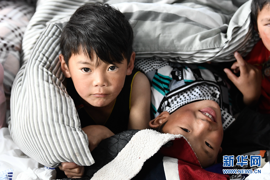 5月22日,在瑪多縣黃河鄉(xiāng)寄宿制學(xué)校救災(zāi)安置點,孩子們在休息。新華社記者 張龍 攝