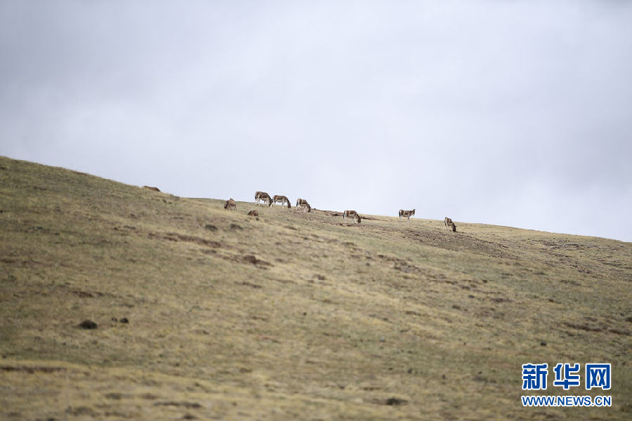 5月25日,一群藏野驢在三江源國(guó)家公園黃河源園區(qū)內(nèi)活動(dòng)。新華社記者 李占軼 攝