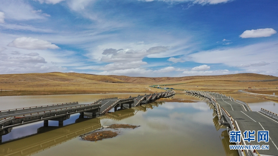 圖為5月26日在瑪多縣野馬灘大橋附近拍攝的地震造成的裂紋。據(jù)青海地震臺網(wǎng)測定:截至2021年5月25日10時00分共記錄到3.0級以上余震46次,其中3.0至3.9級地震32次,4.0至4.9級地震13次,5.0至5.9級地震1次,最大余震為5月22日10時29分發(fā)生的5.1級地震。從當(dāng)前余震監(jiān)測結(jié)果來看,余震的空間分布長度達(dá)170公里,在時間上呈正常衰減特征。