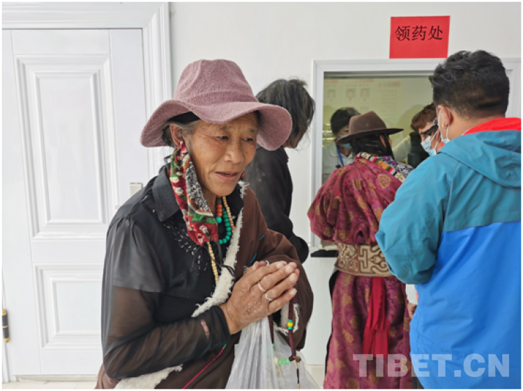 一名50多歲的藏族老人在領(lǐng)到免費的藥品后,拉著志愿者的手感動得流下眼淚。她說:你們太好了,看病給藥不要錢,謝謝你們!