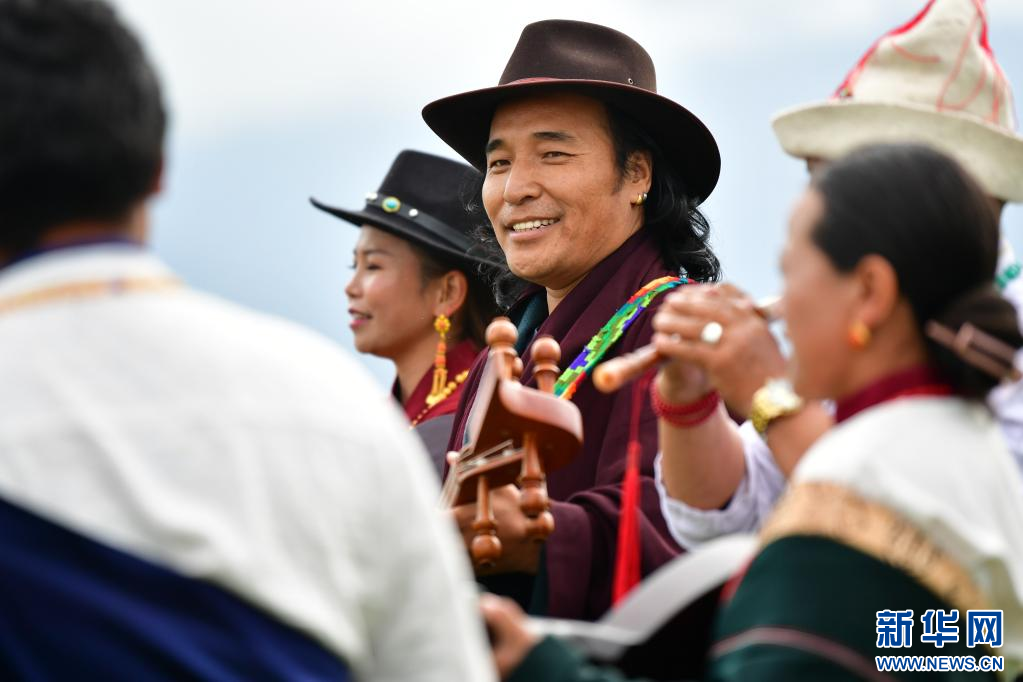 夏日的草原“流行樂(lè)” 格薩爾彈唱藝人在瑪曲草原上彈唱格薩爾(7月14日攝)。新華社記者 杜哲宇 攝