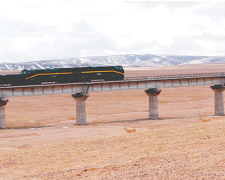 藏羚羊已習(xí)慣了火車從身邊呼嘯而過。