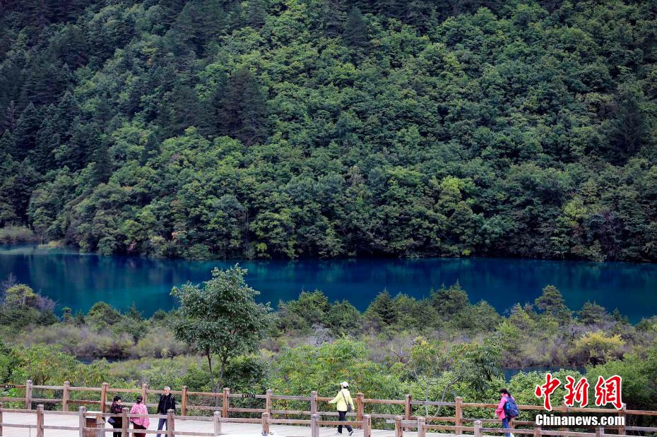 9月27日,四川阿壩,游客在九寨溝景區(qū)樹正群海游覽。王磊 攝