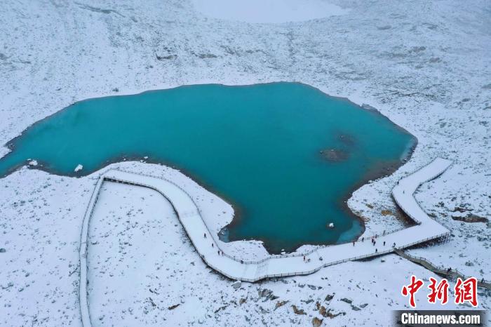 航拍達古冰川美麗的淚湖。肖蓉 攝