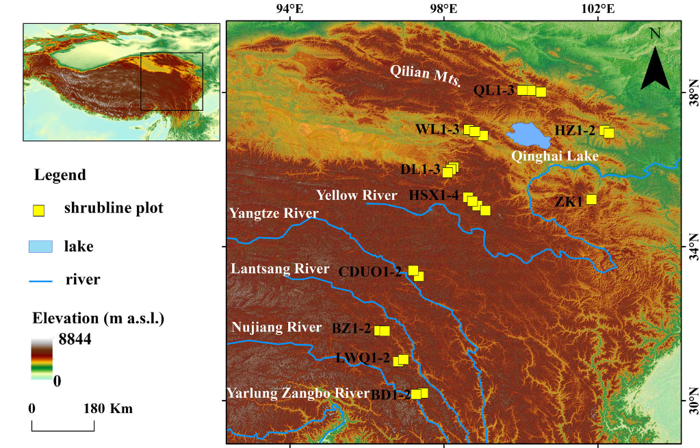 文章通訊作者、中科院青藏高原所研究員梁爾源介紹,高山灌木線是指灌叢分布的海拔邊界上限,被認(rèn)為是探索高寒生態(tài)系統(tǒng)對全球變化響應(yīng)與適應(yīng)的天然實(shí)驗(yàn)室和全球變暖的“預(yù)警線”。