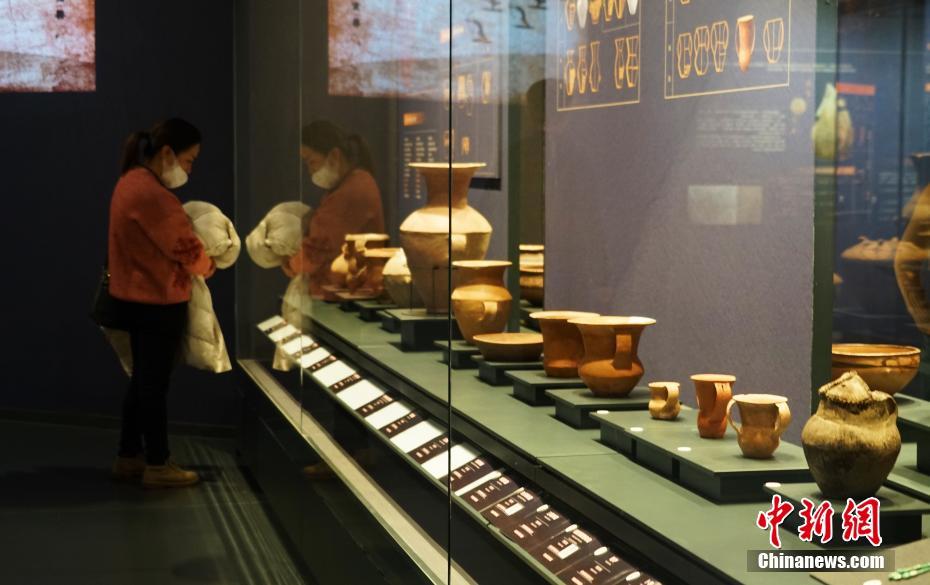 11月29日,游客在位于青海省西寧市的青海省博物館參觀。當(dāng)日,青海省博物館經(jīng)一年半升級(jí)改造后開館并舉辦“1+3”主題展覽,160件藏品首次亮相。該展覽以青海歷史文物為主,青海非物質(zhì)文化遺產(chǎn)、考古成果、百年革命文物為輔,多角度展現(xiàn)地域歷史及民族文化。據(jù)了解,升級(jí)后的博物館上展文物1331件(套)/2405件,其中一級(jí)文物191件,珍貴文物248件(套),上展文物體量為青藏高原最大。 中新社記者 馬銘言 攝