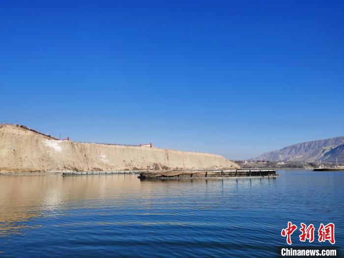圖為青海省黃南藏族自治州尖扎縣黃河水面冷水魚養(yǎng)殖網(wǎng)箱。 張?zhí)砀!z
