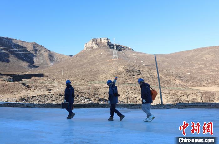 圖為國網(wǎng)青海檢修公司輸電運(yùn)檢人員李承鴻、楊濤、梁威對750千伏拉寧線開展春節(jié)前特巡。朱毅然 攝