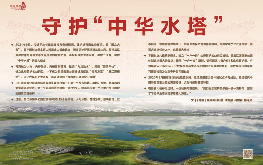 ◆ 2021年6月,習(xí)近平總書記赴青??疾鞎r強調(diào),保護(hù)好青海生態(tài)環(huán)境,是“國之大者”。要牢固樹立綠水青山就是金山銀山理念,切實保護(hù)好地球第三極生態(tài)。要把三江源保護(hù)作為青海生態(tài)文明建設(shè)的重中之重,承擔(dān)好維護(hù)生態(tài)安全、保護(hù)三江源、保護(hù)“中華水塔”的重大使命
