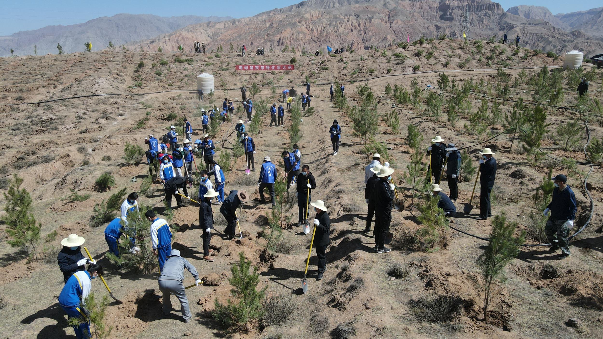 植樹現(xiàn)場,“播撒一顆種子 收獲一片綠色”“綠水青山就是金山銀山”等橫幅隨處可見。黃南州四大班子成員與機關干部一起揮動鐵鍬,挖坑、抬樹、扶苗、培土、踩實、澆水……每一道工序都做得十分認真細致,掀起了春季綠化造林的高潮。