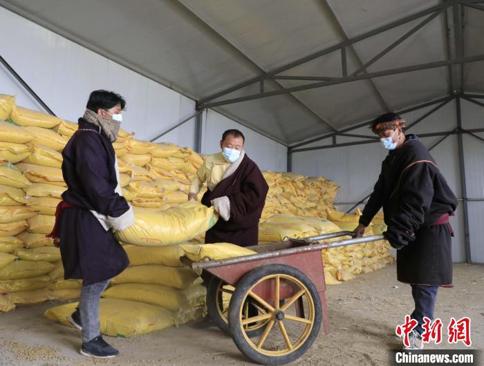 圖為工作人員轉(zhuǎn)運(yùn)飼料。張海麟 攝