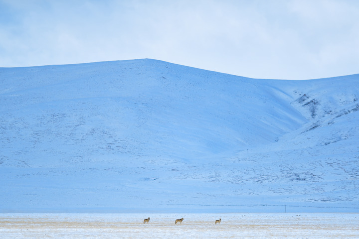 在三江源國家公園黃河源園區(qū)內(nèi)拍攝的三匹狼。新華社記者 張龍 攝