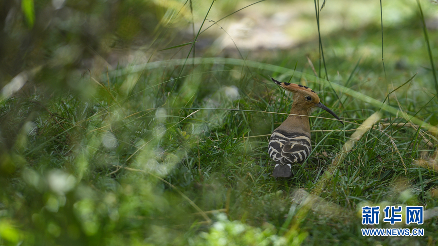 在青海省玉樹(shù)藏族自治州通天河畔勒巴溝拍攝到的戴勝。新華網(wǎng) 潘彬彬 攝
