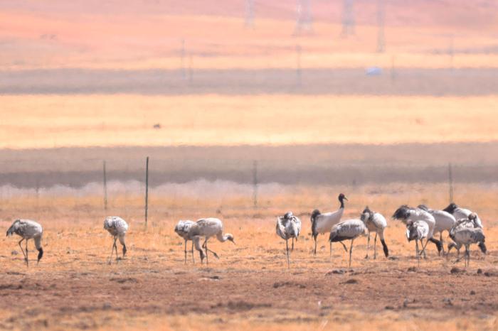據(jù)介紹,此次調(diào)查共記錄到鳥類44種8000余只,隸屬11目22科。其中,國家Ⅰ級保護動物4種,分別為黑頸鶴、胡兀鷲、草原雕、獵隼;國家Ⅱ級保護動物6種,分別為蓑羽鶴、灰鶴、高山兀鷲、大鵟、縱紋腹小鸮、紅隼;列入世界自然保護聯(lián)盟瀕危物種紅色名錄(IUCN),瀕危2種、易危1種、近危3種、無危37種。