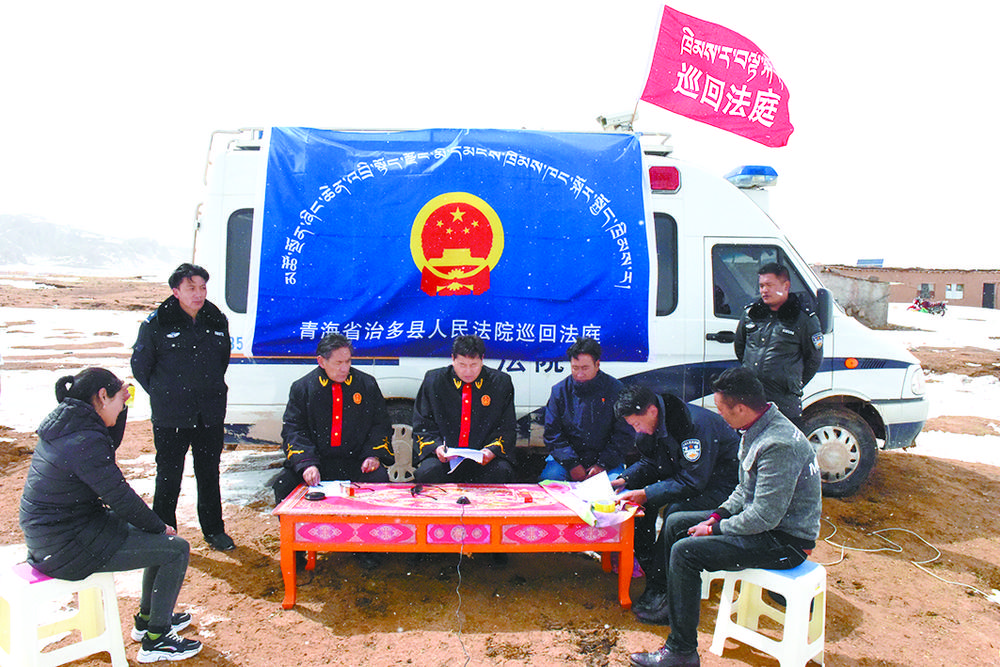 治多縣人民法院巡回法庭工作組在索加鄉(xiāng)對(duì)一起民事糾紛進(jìn)行巡回審理。