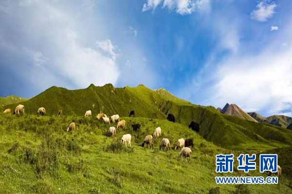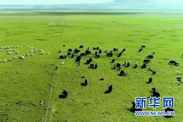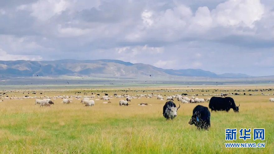 海南州興??h一處牧場上牛羊在覓食。新華網發(fā)