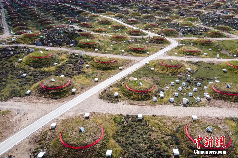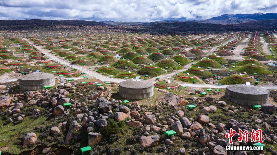 6月28日,四川稻城,觀測(cè)站中間房屋結(jié)構(gòu)為水切倫科夫探測(cè)器。海拔4410米的四川省甘孜州稻城縣海子山,5216個(gè)電磁粒子探測(cè)器和1188個(gè)繆子探測(cè)器,以及占地78000平方米的水切倫科夫探測(cè)器有序分布在1.36平方公里范圍,十分壯觀,這是中國(guó)建設(shè)的第三代高山宇宙線實(shí)驗(yàn)站。中新社記者 劉忠俊