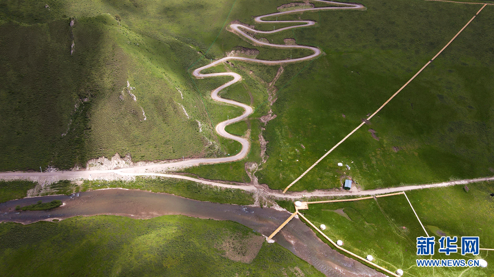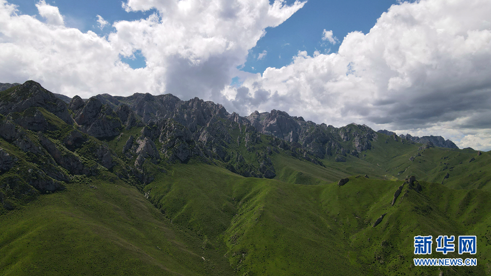 時(shí)值盛夏,青海省黃南藏族自治州河南蒙古族自治縣境內(nèi)的青海洮河源濕地公園,奇峰聳立、水草豐美。藍(lán)天白云之下,高山與草原相映,風(fēng)光旖旎、如詩(shī)如畫。