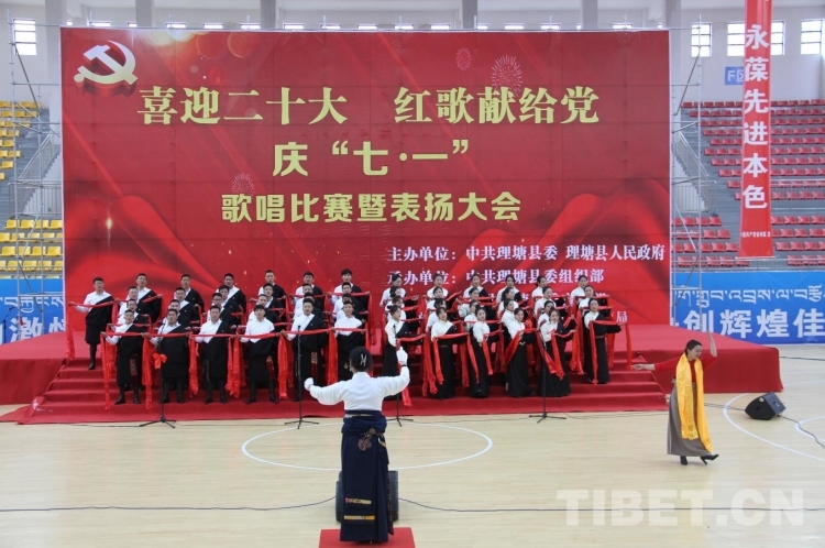 中國西藏網(wǎng)訊 7月1日,四川省甘孜藏族自治州理塘縣舉行“喜迎二十大 紅歌獻給黨 慶‘七?一’歌唱比賽暨表揚大會”,高原藏家兒女用歌聲和舞蹈表達感黨恩、愛祖國、跟黨走的決心和信心。(中國西藏網(wǎng) 通訊員/葉強平)