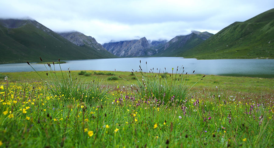 進入盛夏,年保玉則連綿起伏的山巒倒影在靜謐的湖面,山間霧靄繚繞,山下花草蕩漾,成群牦牛悠然漫步其間。近年來,年寶玉則停止對外開放,實施嚴格的保護,“天神后花園”逐漸“休養(yǎng)生息”,重現水清草豐。