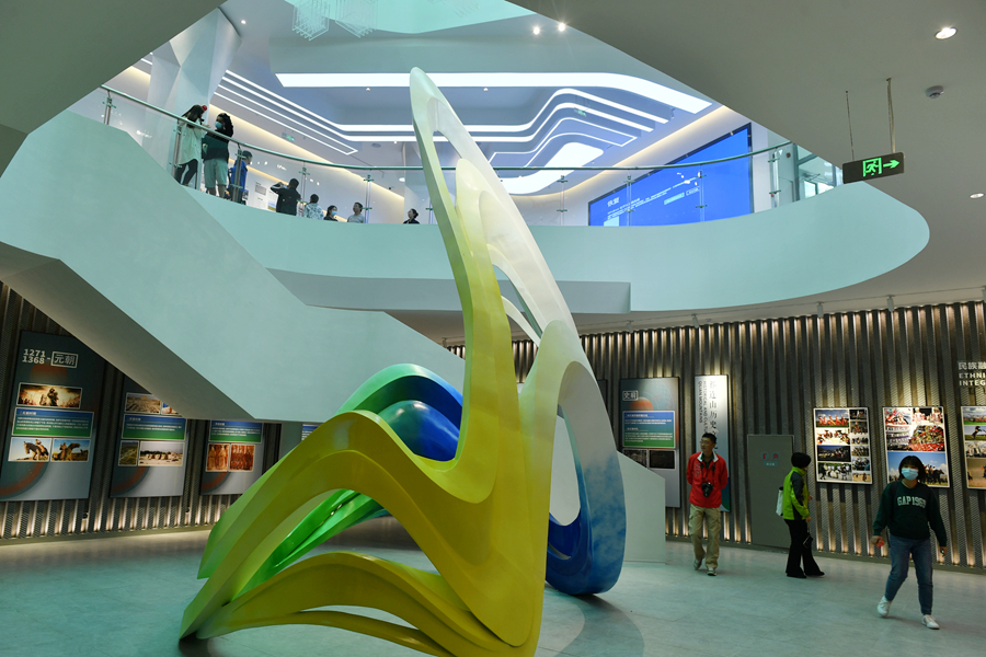 參觀者在祁連山國(guó)家公園青海片區(qū)展陳中心內(nèi)駐足參觀。卡婭梅朵 攝