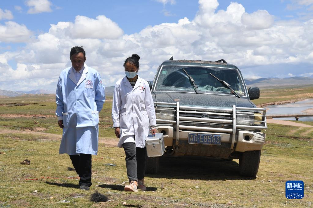 在治多縣索加鄉(xiāng)當(dāng)曲村,布久索南更青(左)和同事前往牧民家中問(wèn)診(8月11日攝)。新華社記者 范培珅 攝