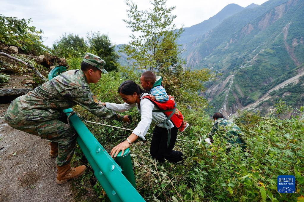 9月6日,瀘定縣得妥鎮(zhèn)灣東村村民向外疏散。新華社記者 沈伯韓 攝