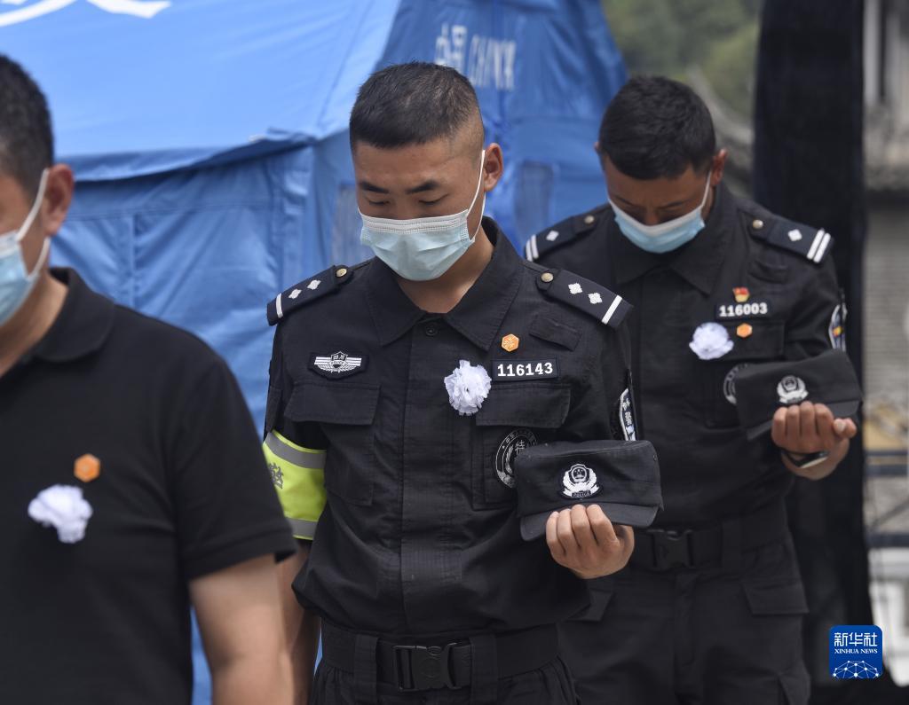 9月12日,在瀘定縣磨西鎮(zhèn),參加悼念活動(dòng)的人員為遇難同胞默哀。 新華社記者 劉坤 攝