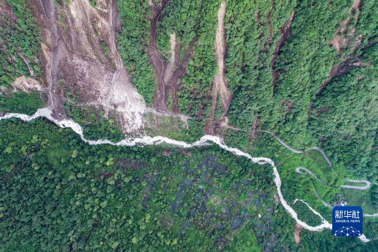 這是9月7日拍攝的海螺溝景區(qū)一號營地附近的崩塌災害現(xiàn)場(右側部分)(無人機照片)。新華社發(fā)(四川省冶勘設計集團有限公司供圖)