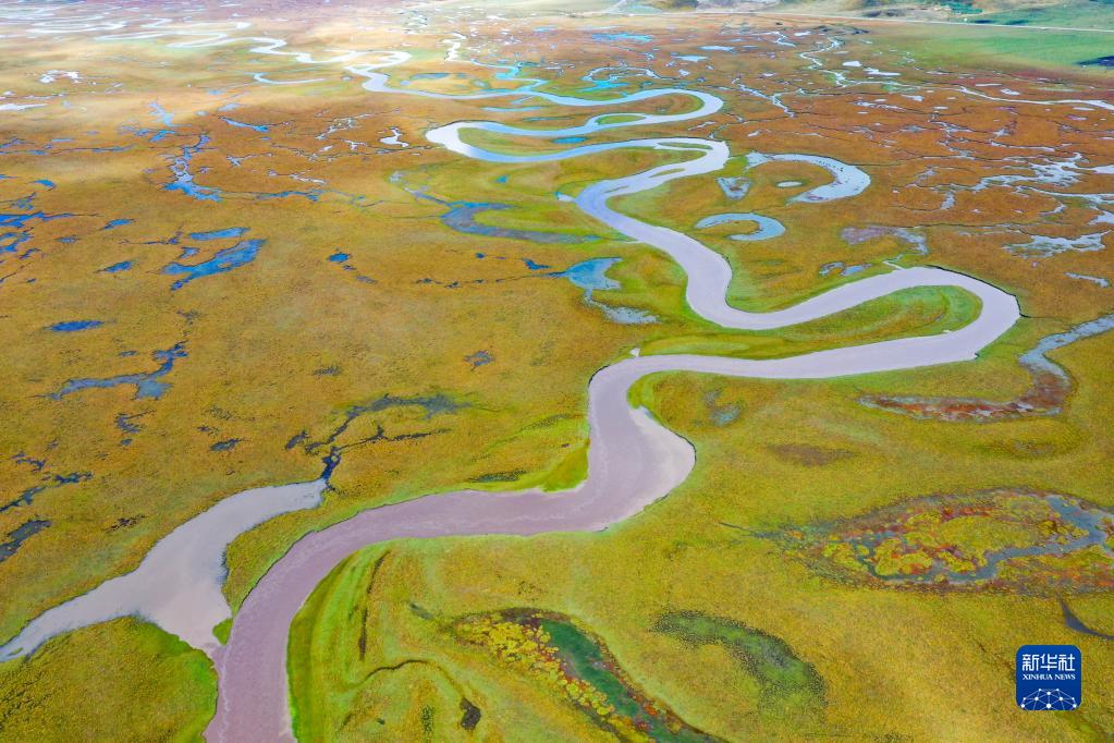 這是瑪曲縣阿萬倉濕地內的河流和沼澤(9月17日攝,無人機照片)。新華社記者 郎兵兵 攝