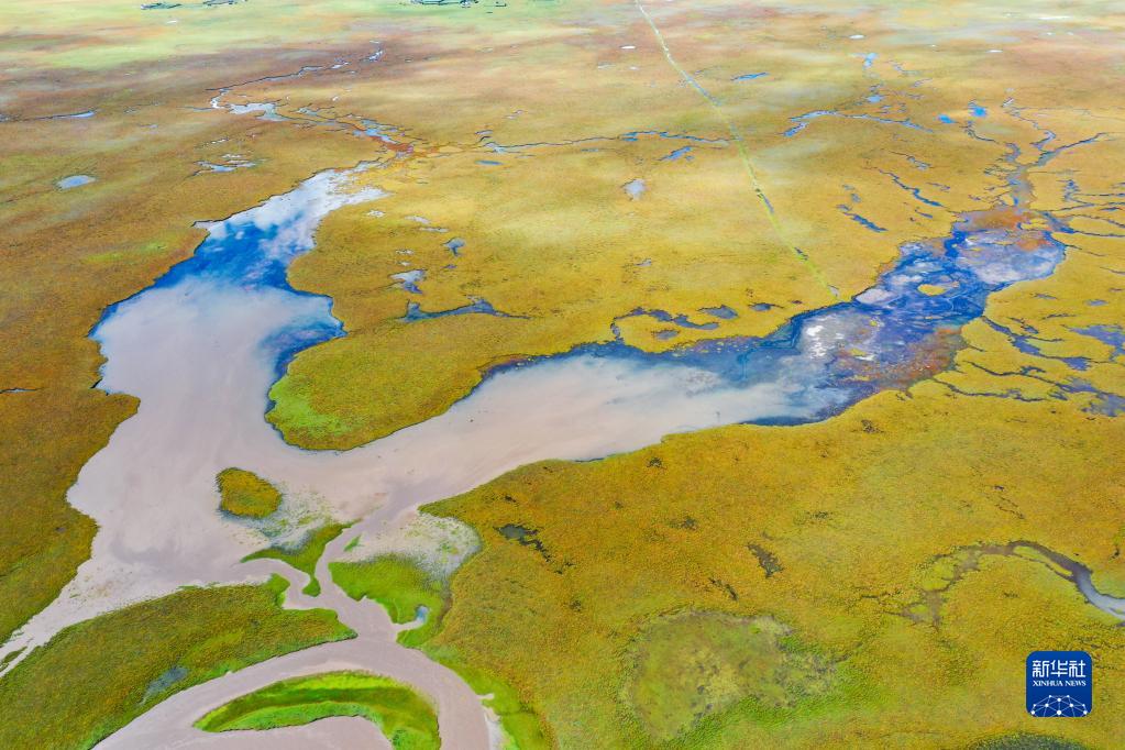 這是瑪曲縣阿萬倉濕地內的一處沼澤(9月17日攝,無人機照片)。新華社記者 郎兵兵 攝