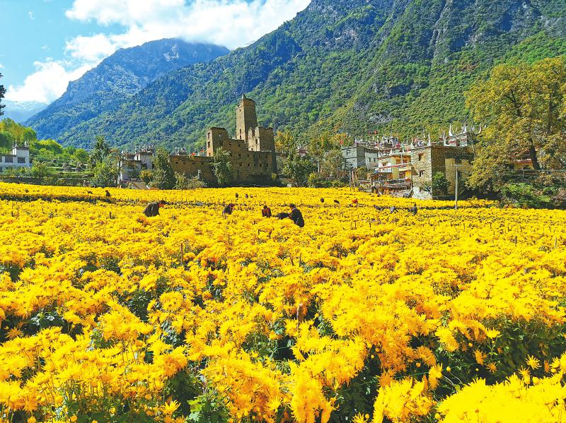丹巴縣巴底鎮(zhèn)邛山土司官寨文旅融合鄉(xiāng)村振興示范點之金絲皇菊種植基地。
