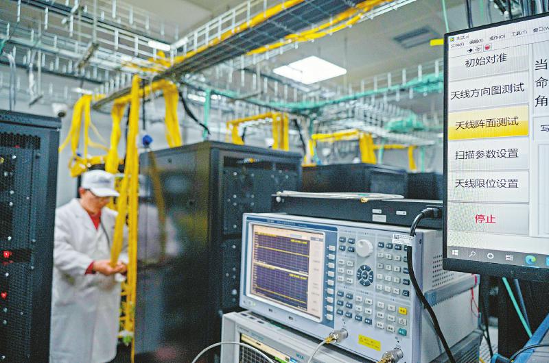 2022年10月28日 科研人員在調(diào)試圓環(huán)陣太陽射電成像望遠鏡系統(tǒng)設備。