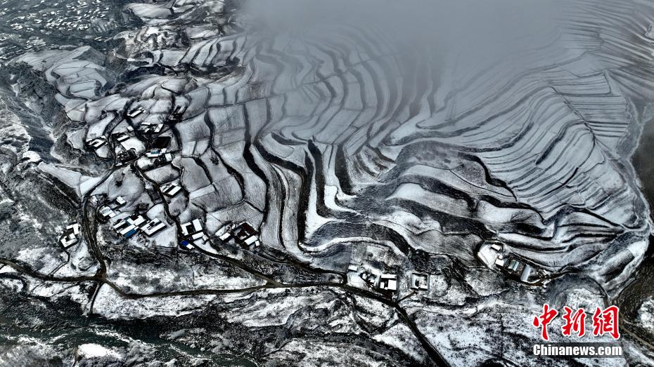 連日來(lái),坐落在黃河岸畔的青海省海東市化隆縣雄先藏族鄉(xiāng)、查甫藏族鄉(xiāng),迎來(lái)降雪。雪后航拍藏族傳統(tǒng)村落和山區(qū)梯田,阡陌交通,加之云霧繚繞,宛如仙境。