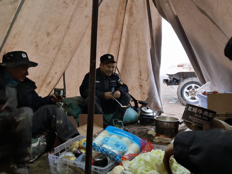 頻繁出現(xiàn)的陷車讓巡山的路途充滿了不確定,“有時(shí)候帶了10天的干糧,路上遇上雨天,一走就是半個(gè)月。”尼瑪扎西曾有過這樣的經(jīng)歷,到最后餓得實(shí)在受不了,他撿來高原上的野牦牛糞,用紙卷起來,點(diǎn)著了當(dāng)煙抽。嗆人的煙霧入肺,感到陣陣惡心,“這會(huì)讓人有一種飽腹的錯(cuò)覺。”