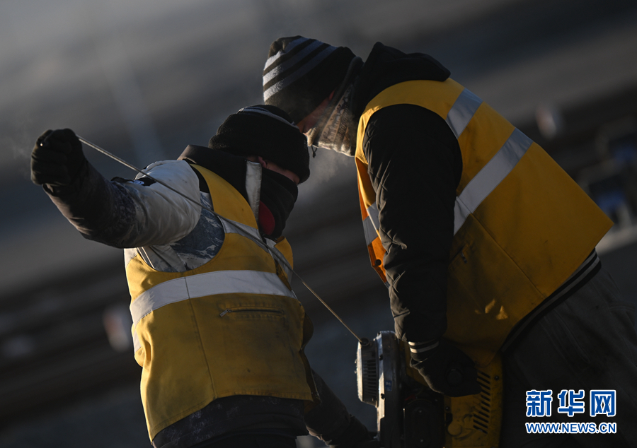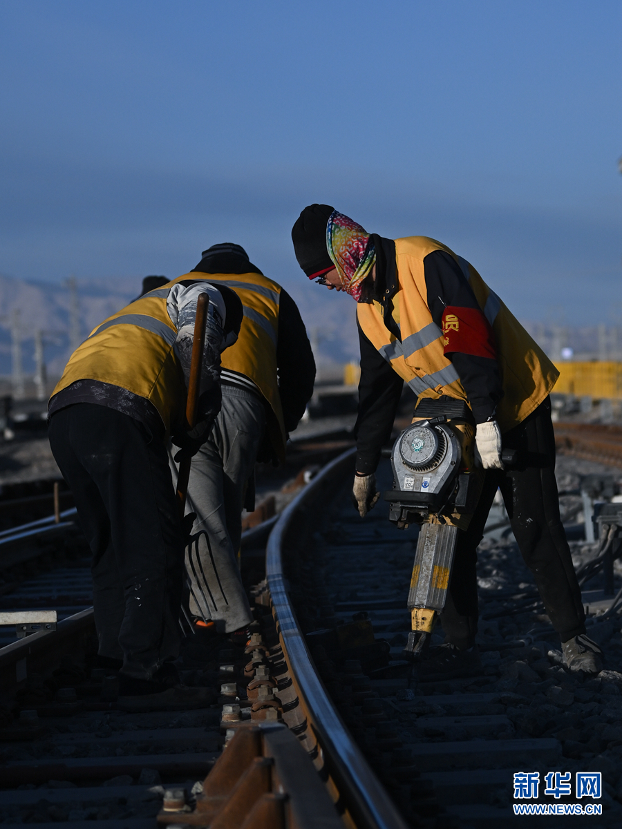 2月7日,中國鐵路青藏集團有限公司格爾木工務(wù)段格南線路工區(qū)的職工在格爾木南站施工。新華社記者 張龍 攝