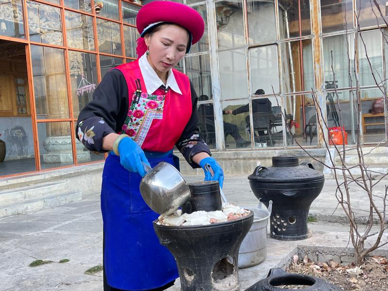 傍晚時分,“年夜飯”準(zhǔn)備完成,初稱站在火塘邊把剛和好的稀泥一層一層地刷到火塘上,“這是藏歷新年的添新土儀式(藏歷新年接福習(xí)俗),表示我們對來年日子風(fēng)調(diào)雨順、紅紅火火的美好期待。”初稱把這些傳統(tǒng)習(xí)俗認(rèn)真地教給家里的孩子們。