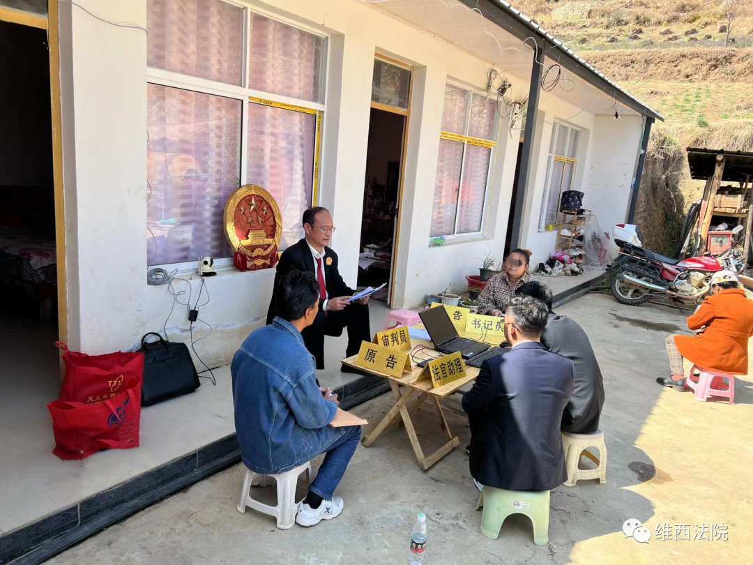 2023年3月14日,為減輕當事人訴累,提高辦案質(zhì)效,立案庭干警一行4人到維西縣保和鎮(zhèn)蘭永村的當事人家中進行巡回開庭。[詳細] -