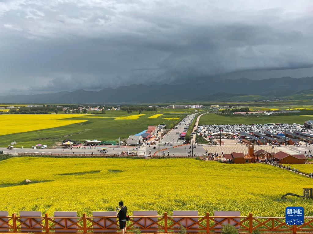 海北藏族自治州剛察縣油菜花海。新華社記者 李琳海 攝