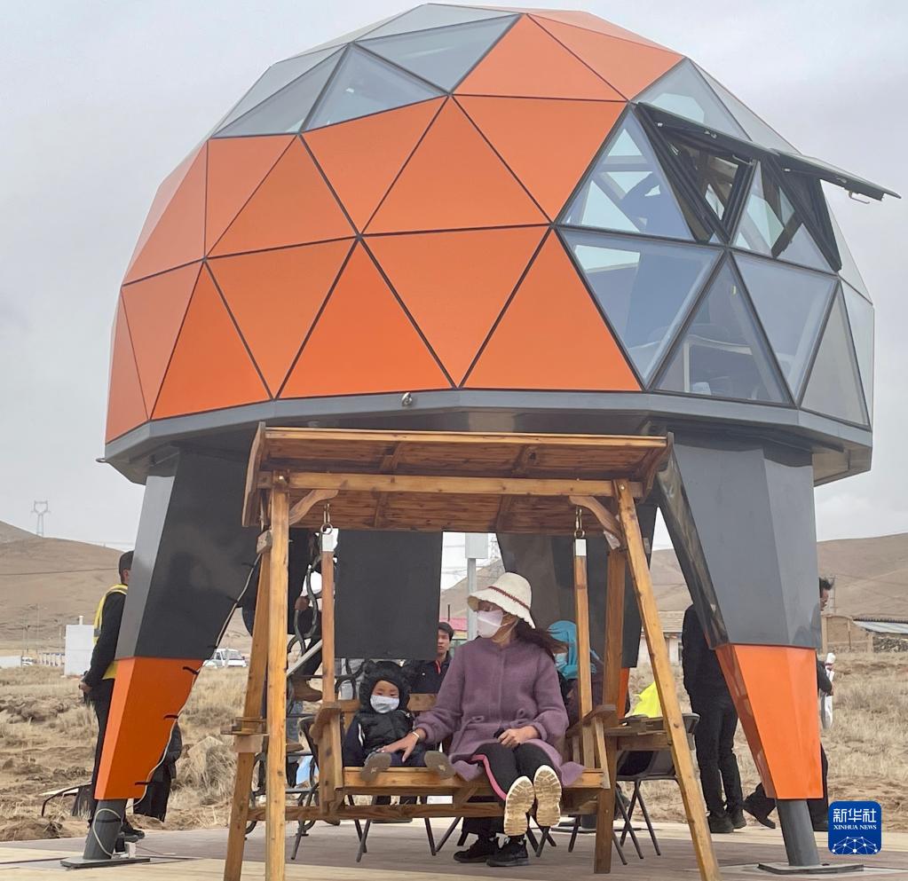 27日,游客在活動(dòng)現(xiàn)場(chǎng)體驗(yàn)星空房和戶外秋千。 新華社記者 周盛盛 攝