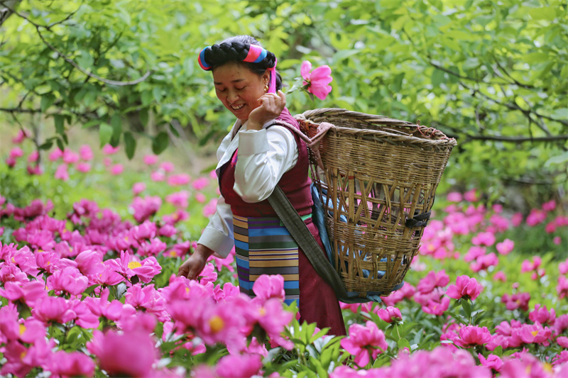 五月,正是芍藥花開的最佳時(shí)節(jié)。在維西縣塔城鎮(zhèn)其宗村村民楊小花家的芍藥地中,大片的芍藥花競(jìng)相開放,花團(tuán)錦簇、花香四溢,楊小花正在田間忙碌著采摘芍藥花朵,芍藥花及根采挖后都可出售,在增加收入的同時(shí)也成為田間地頭一道美麗的風(fēng)景線。