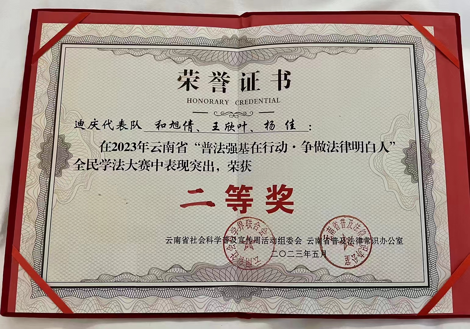 迪慶代表隊(duì)在“普法強(qiáng)基在行動(dòng)·爭(zhēng)做法律明白人”全民學(xué)法大賽中榮獲二等獎(jiǎng)